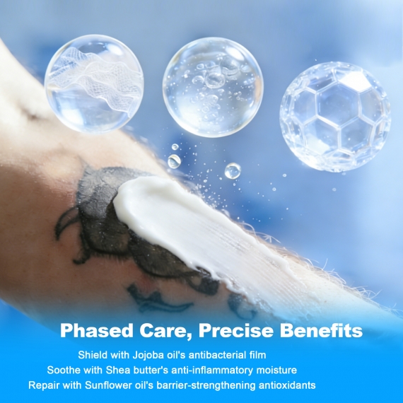 Enriched with Vitamin E Acetate (Tocopheryl Acetate) to defend against oxidation, helping maintain tattoo vibrancy and prevent premature fading.